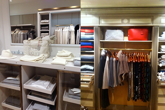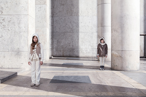 La marque est présente dans un corner élégant et contemporain avec des cachemires moelleux, des fourrures en lapin rasé, des capes en mouton retourné et des accessoires douillets, qui complètent la ligne babylove.